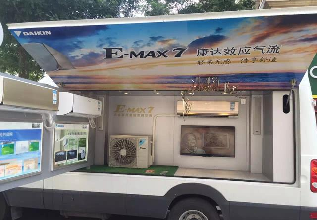如果只是一些產(chǎn)品的展示,很難呈現(xiàn)出中央空調(diào)的效果。安裝有實體機器的移動展示車,就相當于把空調(diào)的實景體驗廳開到了小區(qū),讓消費者自己去體驗產(chǎn)品到底好在哪里。